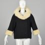 Large 1950s Black Coat White Mink Fur Trim Boxy Cropped Winter Weight Jacket