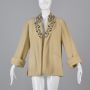 Large 1950s Loose Wool Jacket Cream Separates Beading Rockabilly Open Front Jacket