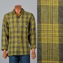 Large 1950s Mens Shirt Yellow and Gray Plaid Loop Collar Long Sleeve Button Down