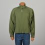 Large 1960s Green Zip Up Jacket Elastic Waist Stand Collar