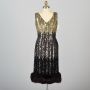 Large 1960s Metallic Chevron Sequin Cocktail Dress with Fox Fur Hem