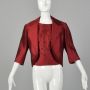 Large 1960s Top Set Red Beaded Blouse Matching Jacket Silky Blazer Holiday Christmas