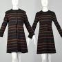 Large 1960s Wool Knit Two Piece Set Brown Black Horizontal Stripe Dress Jacket Cumberbund