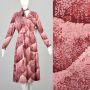 Large 1970s Abstract Print V-Neck Dress with Belt and Matching Sheer Scarf