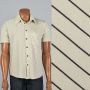 Large 1970s Mens Chevron Diagonal Stripe Shirt Short Sleeve Patch Pocket White Black Button Down