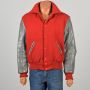 Large 1970s Red and Gray Letterman Bomber Jacket