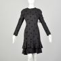 Large 1980s Louis Feraud Dress Grey Flocked Long Sleeve Ruffles