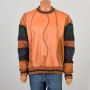Large 1990s Brown Leather Striped Sleeve Knit Sweater