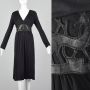 Large 1990s Cacharel Dress Black Silk Jersey Vegan Leather Rams Stags Birds Waist Band