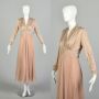 Large-XL 1970s Fleshtone Miss Elliette Maxi Dress Long Sleeve Accordion Pleat Skirt Curly Hem