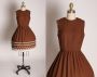 Late 1950s Early 1960s Chocolate Brown White Eyelet Lace Hem Detail Sleeveless Dress - S