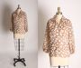 Late 1950s Early 1960s Tan and White Scattered Polka Dot Long Sleeve Nylon Blouse - XL
