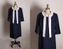 Late 1960s Early 1970s Navy Blue and White Sleeveless Shift Dress with Matching Open Front Jacket