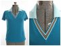 Late 60s Early 70s Vintage Blue Knit Short Sleeve V-Neck Shirt by Talbott Travler | M/L | Bust 38''