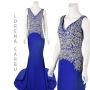 'Magnificent' hardly begins to describe this royal blue silk masterpiece from Romanian-American designer, Lorena Sarbu. Described on the attached label as follows: ''Blue Gown Saphire/Silver silk crepe column gown w/embroidered torso.'' In this case 'embroidered' means densely embellished with silver beads and tiny silver sequins attached to a matrix of very fine matching blue tulle that covers the torso of the dress. Our mannequin isn't the right size to show that the front of the dress should barely graze the ground when worn with the proper shoes (and customized for the height of the wearer as needed.) All of the extra length forming the train is in the back. This is a sample piece that is still in brand new condition; even the train is free of soil along the hemline. There is no size tag in the dress, but the measurements indicate that it is a modern size 2-4, slightly larger than the typical designer sample. Please refer to the measurements for the best guidance regarding size and compare with a similar garment that fits you.