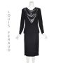 LOUIS FERAUD Vintage Black Two-Piece Cocktail Dress with Silver Velvet Cowl Neck SZ 10