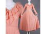 L/XL Vintage 1970s Peach Cottagecore Hostess Maxi Dress Party Ruffle Long Sleeve Airy 70s