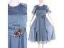 M L Vintage 1970s Steel Blue Gray Airy Elegant Disco Cocktail Dress w Belt