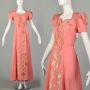 Medium 1940s Dress Pink Taffeta Velvet Applique Long Evening Formal Gown