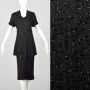 Medium 1940s Little Black Dress Beaded Rayon Peplum Art Deco