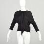 Medium 1950s Black Rayon Jersey Buttoned Top with Tie
