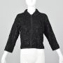 Medium 1950s Cardigan Beaded Lace Floral Overlay Black Satin Trim Vintage Outerwear Sweater