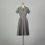 Medium 1950s Day Dress Gray Wool Short Sleeve Classic Minimalist