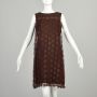 Medium 1960s Brown Dress Sheer Floral Lace Overlay Sleeveless Chocolate Swing Shift Dress