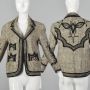Medium 1960s Jacket Tan Chunky Tweed Bohemian Folk Black Soutache Trim Design Blazer