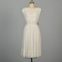Medium 1960s Silk Dress Rhinestone Waist White Sleeveless