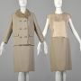Medium 1960s Tan Skirt Suit Wool Jacket Three Piece Set Silk Blouse Beige Persian Lamb Collar