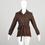 Medium 1970s Brown Wool Belted Shirt Long Sleeve Button Up Jacket