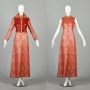 Oscar de la Renta Medium 1970s Designer Red Gold Brocade Formal Holiday Party Dress Sequin Jacket
