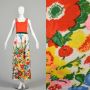 Medium 1970s Floral Dress Orange Sleeveless Spring Summer Hostess Garden Party Colorful Maxi Dress