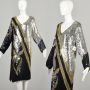 Medium 1970s Gold Silver Black Asymmetric Stripe Sequin Sheath Dress