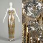 Medium 1970s Gold Silver Dress Metallic Floral Sequin Lurex Strapless Elegant Evening Formal Maxi