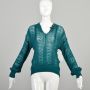 Medium 1970s Teal Open Knit Long Sleeve Sweater Top