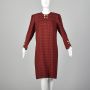 Medium 1980s Adele Simpson Dress Black Houndstooth Plaid Long Sleeve Wool Shift