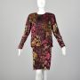 Medium 1980s Black Dress Cocktail Party Evening Long Sleeve Velvet Burnout Pink Yellow Roses