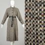 Medium 1980s Checkerboard Wool Tweed Mock Neck Belted Coat
