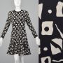 Medium 1980s Louis Féraud Black Graphic Print Silk Dress Drop Waist