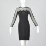 Medium 1990s Carmen Marc Valvo Black Dress Illusion Neckline Sheer Long Sleeves