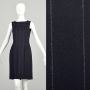 Medium 1990s Navy Blue Wool Dress Pinstripe Sleeveless Autumn Layering Casual Shift Dress w/ Pockets