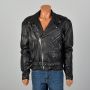 Medium Black Leather Jacket 1990s Punk Motorcycle Biker Greaser Asymmetrical Zip Up