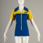 Medium Blue and Yellow top 1970s Uniform Shirt Pointed Collar Rainbow Patch