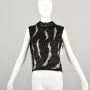 Medium/Large 1960s Black Sequin Collared Sleeveless Abstract Tiger Claw Shell Top