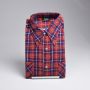 Large 1970s Mens Shirt Red and Blue Plaid Flannel Long Sleeve Button Down Deadstock