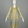 M/L | 1970s V-Neck Long Sleeve Chartreuse Floral Signature Print Dress by Alfred Shaheen