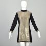 M/L | Mod Space Age 1970s Long Sleeve Black Mini Dress with Silver Sequin Front