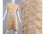 M/L Vintage 1960s Tan Embroidered Knee Day Dress Grapevine Short Sleeve Cotton
